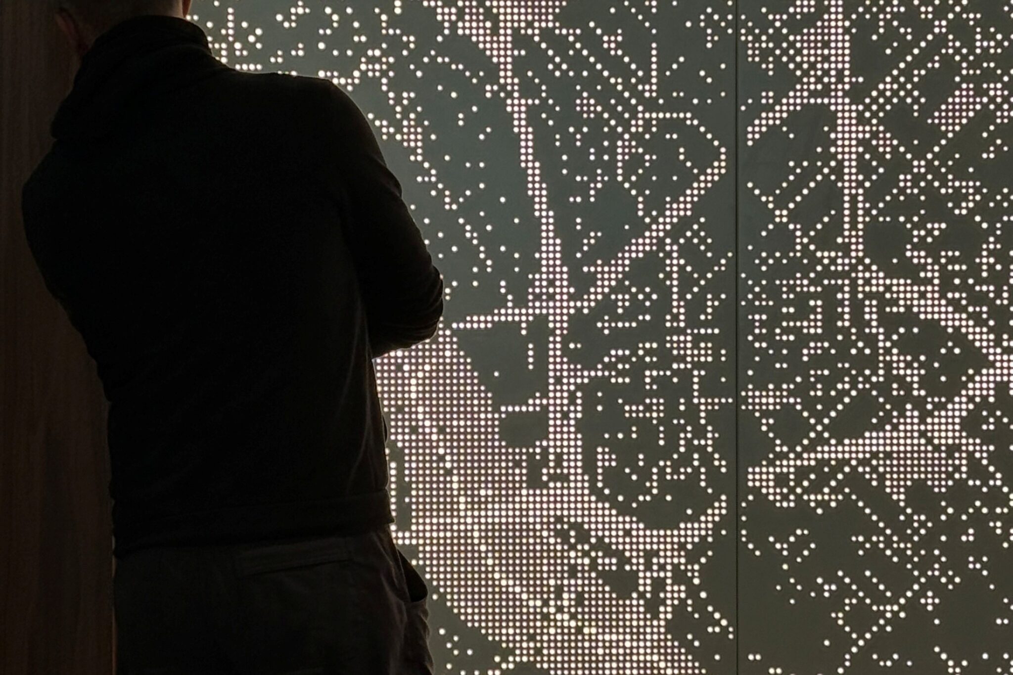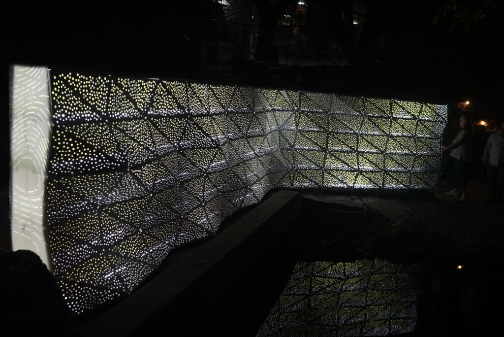 Custom faceted, perforated art piece with integrated lighting