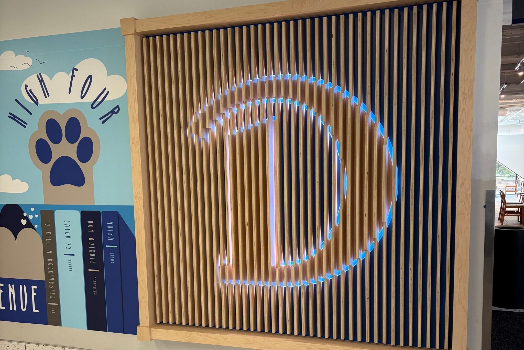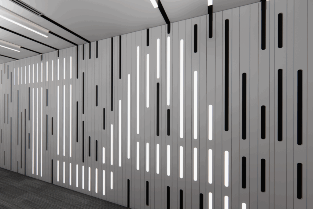 Drake University slat wall with integrated lighting