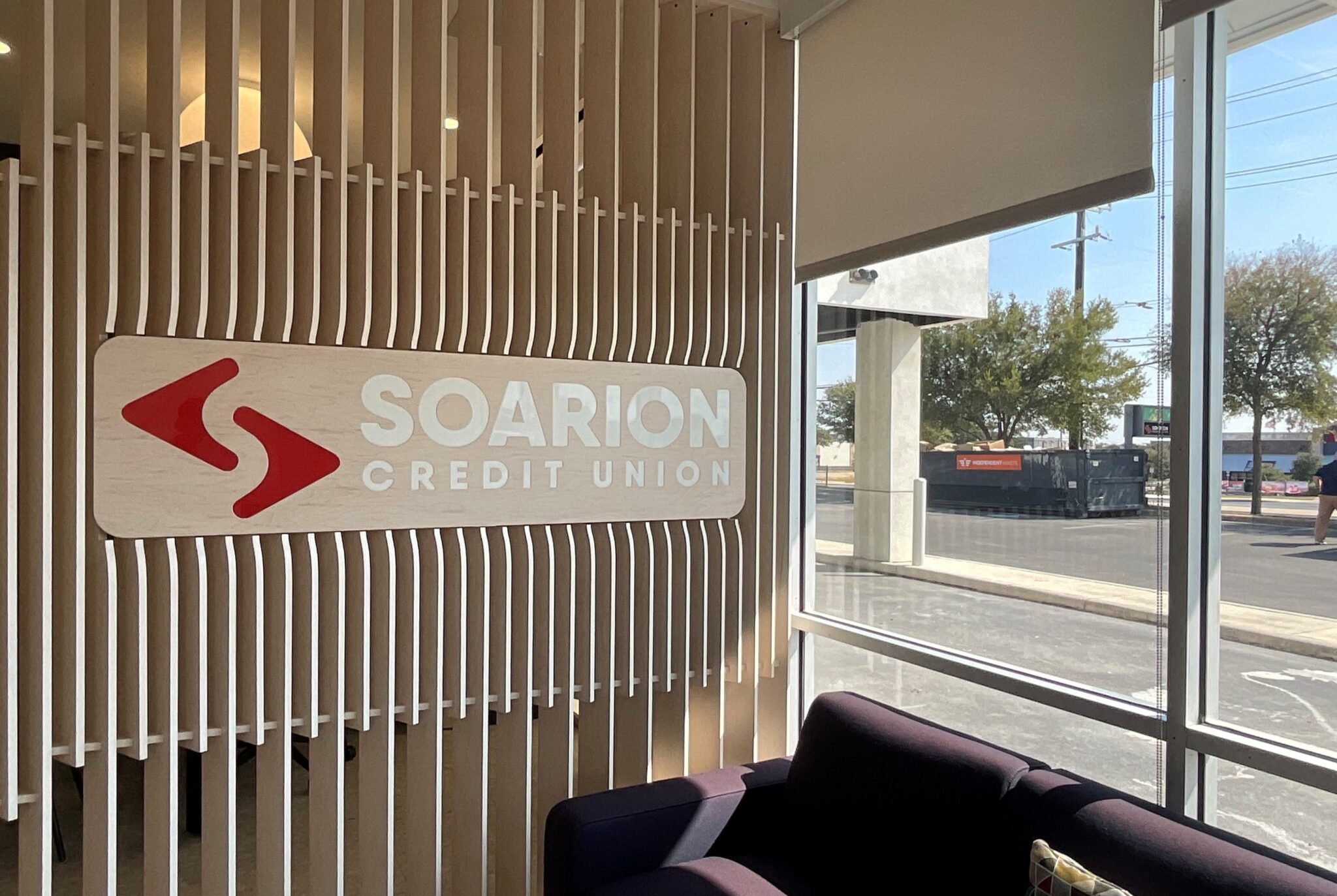 Slat divider system in open office used for wayfinding