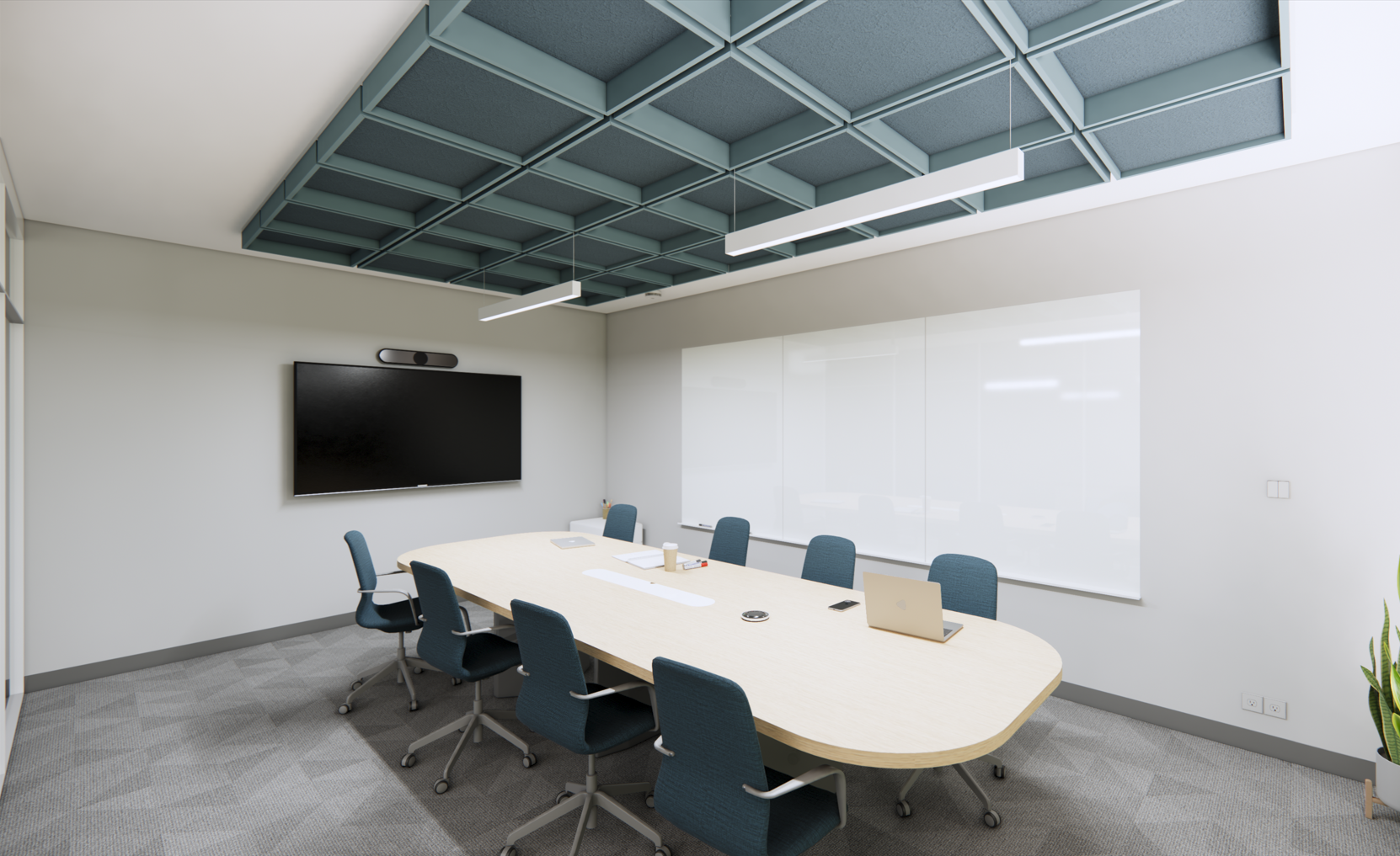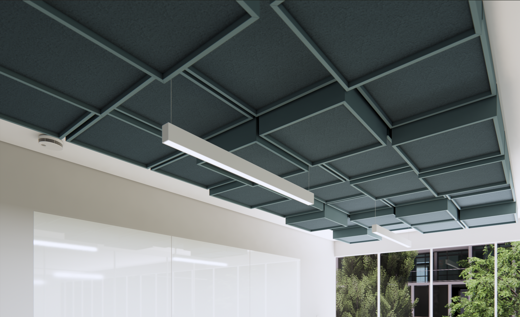 - Mix colors and depths within a single ceiling system