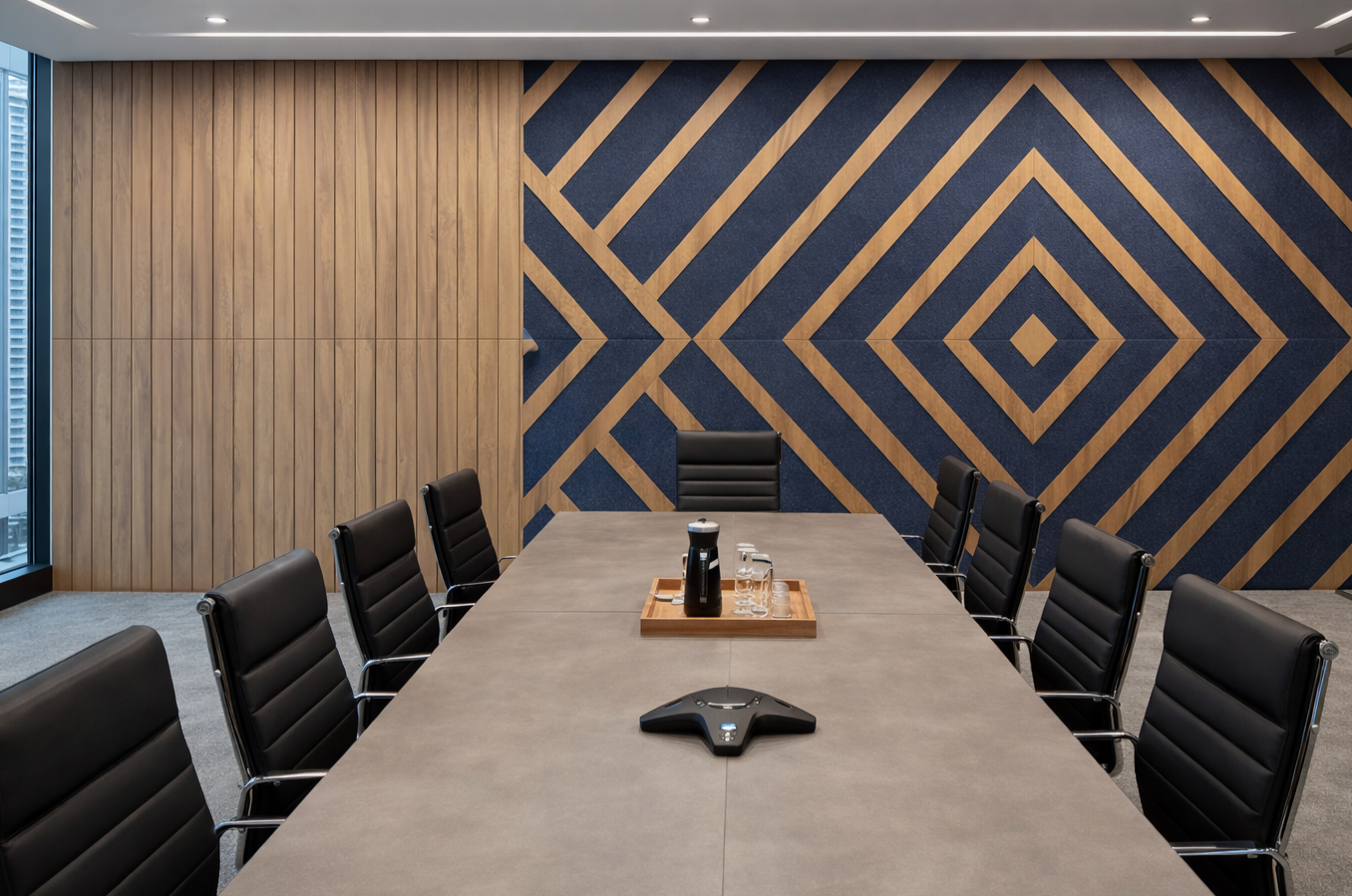 - Fabricated from MDF or PET felt for color and acoustic performance
